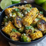 A delightful twist on a classic, combining the vibrant, zesty flavors of street corn with tender, caramelized Brussels sprouts.